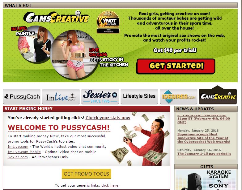 - PussyCash is the affiliate program of many cam and lifestyle site the most known is ImLive.com - Imlive is one of the biggest cam sites in the world